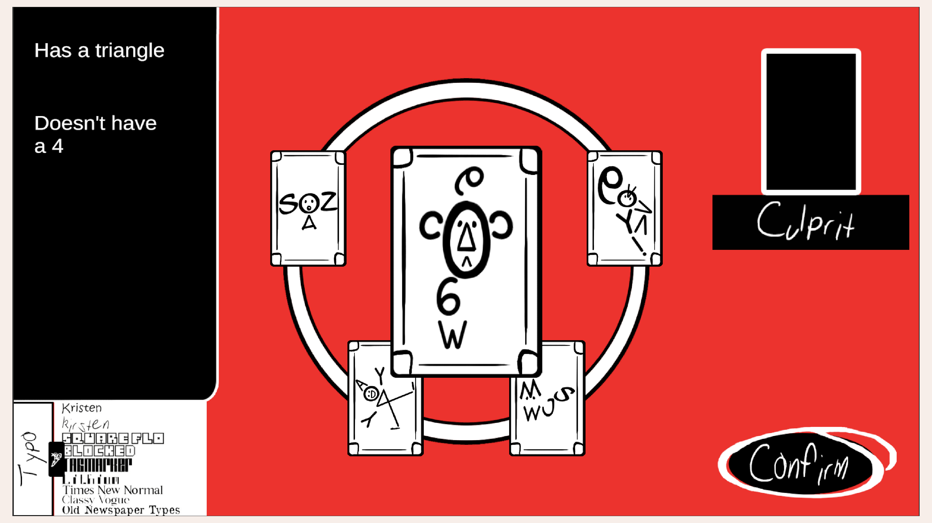 A short, matching information to person game made during a 48h school game jam in September 2025 with the theme : Typography and Geometry.